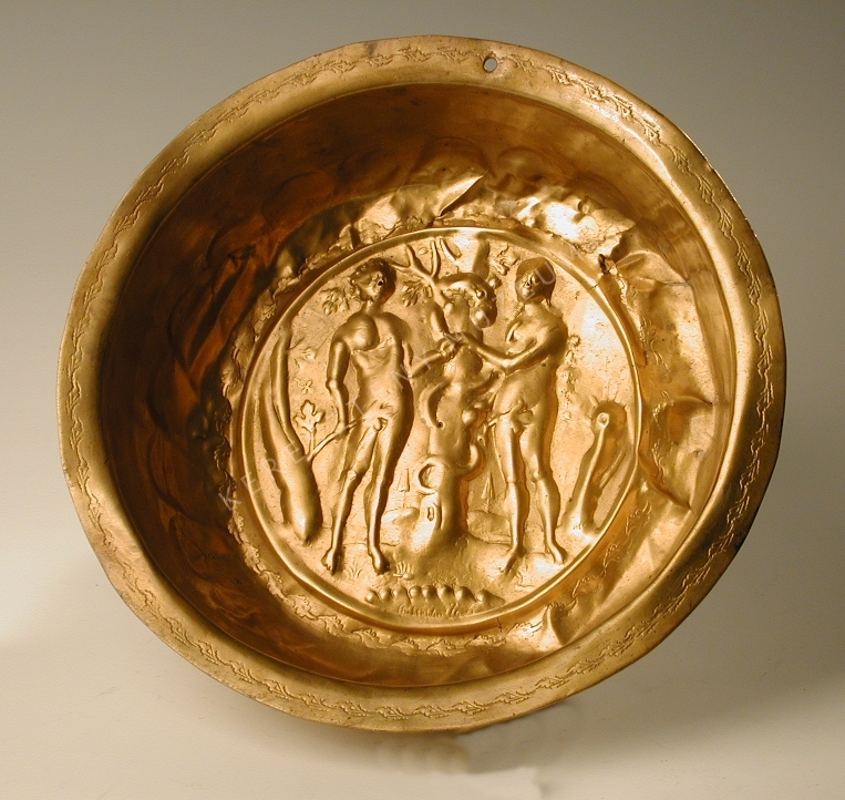 Magasra felhúzott peremű tál, öblében Ádám és Éva bűnbeesési történetével. Népszerű és megbecsült házi kellék volt a német polgárság körében, de elterjedt egész Európában.