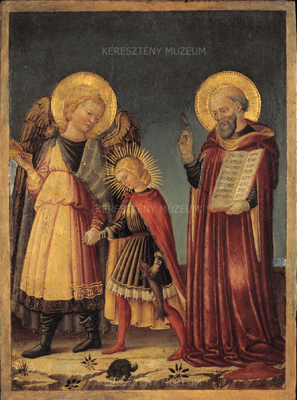 Neri di Bicci a 15. századi firenzei festészet népszerű, rendkívül termékeny kismestere volt. Egy több generáció óta aktív családi festőműhely élén állva évtizedeken keresztül festette a stílus tekintetében kevés változást mutató, konzervatív ízlésű képeit. Ez a kicsiny táblakép, mely több változatban és egy szinte azonos másolatban is fennmaradt (Firenze, Museo Horne), azt a bibliai történetet beszéli el, melyben Tóbiás Rafael arkangyal védelme alatt hosszú útra indul, hogy a letétbe helyezett családi vagyont visszaszerezze, miközben apja vakságára is gyógyírt talál egy csodatévő hal epéjében. Rafael nagy tiszteletnek örvendett a 15. századi Arno-parti kereskedővárosban, nevét egy vallásos testvérület is viselte. A legelterjedtebb vélemény szerint ezek a kis képek votív céllal születtek: gazdag kereskedőcsaládok rendelhették meg őket távoli üzleti útra induló fiaik számára, akiket ily módon ajánlottak az angyal oltalmába. Ezt az elképzelést támasztja alá az a felirat is, amely egy azonos tárgyú képen fennmaradt: "Raphael medicinalis mecum sis perpetualis et sicut fuisti cum Thobia semper mecum sis in via" (Gyógyító Rafael, légy velem örökké, és ahogy Tóbiással voltál, légy velem mindig az úton!) (Giovanni da Piamonte képe, S. Giovanni Valdarno, Museo della Basilica). A képeken Rafael és Tóbiás kettősét gyakran egy másik szent – itt Jeromos – kíséri, aki talán az utazó ifjú személyes védőszentjeként jelenik meg.