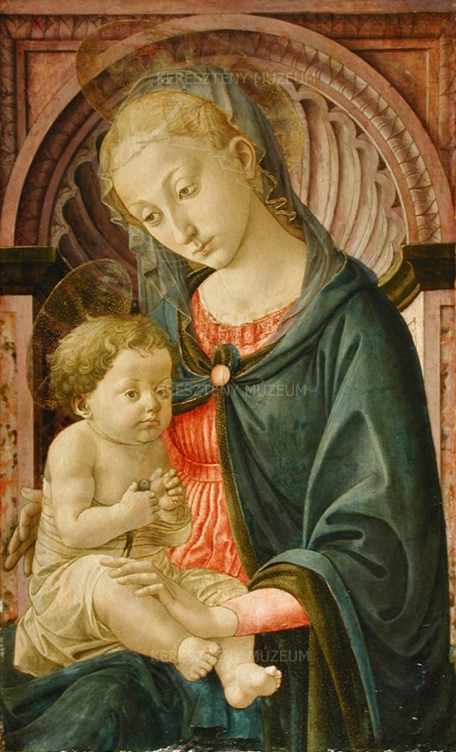 E Madonna Pesellino késői művei közé tartozik, kevéssel halála előtt készült. Az anya és gyermek csoportját a művész egy ambíciózusan megfestett reneszánsz vörösmárvány fülke elé helyezte. A balról érkező, erős fény hangsúlyozza a háttérarchitektúra térmélységét és kiemeli az anatómiai pontossággal ábrázolt testeket. Az ábrázolás kifinomult eleganciája és több motívuma – például a leheletfinom fátylak és az aranypettyekkel ékesített, áttetsző kristálykorongként ábrázolt dicsfények – Filippo Lippi művészetéből ered. Pesellino szomorkás tekintetű Madonnái már saját korában is rendkívül népszerűek voltak. E képnek egy sajátkezű változata a bostoni Isabella Stewart Gardner Múzeumban található, és számos másolata is készült. Lippi és Pesellino Madonnáinak utánzására egy egész festőműhely szakosodott Firenzében, amely sokszorosító kartonok segítségével több évtizeden keresztül másolta őket.