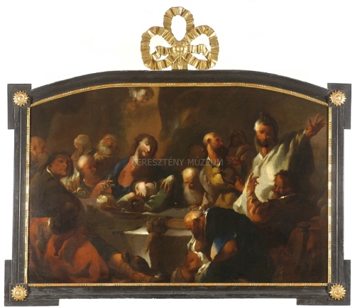 A kép a közép-európai barokk egyik legjelentősebb mesterének, az osztrák Maulbertschnek a műhelyében készült, valószínűleg a festő személyes közreműködésével. Egy korábbi változata is ismert, melyet a salzburgi Residenzgalerie őriz. Eredetileg mindkettő egy-egy kolostor refektóriumát díszíthette. Az utolsó vacsora évszázadok óta gyakori témája volt a refektóriumok díszítésének: a díszítési program alapja az Eucharisztiát alapító utolsó vacsora és a mindennapos étkezés közötti párhuzam volt. Az esztergomi kép mozgalmas, aszimmetrikus kompozíciójának súlypontja a középponttól balra tolódik el: a dráma főszereplői mind itt, a képmező bal felében kaptak helyet. Jézust dicsfény helyett a háttér megvilágítása emeli ki. Az áruló Júdás egykedvűen tekint ki a nézőre a bal alsó sarokból. Pénzeszacskót szorongató jobb kezét csípőre teszi, kinyújtott lábán egy kutya nyugtatja fejét. A képi egyensúlyt az apostolok súlyos, gesztikuláló csoportja teremti meg jobboldalt. Az izzó, parázsló fények és szuggesztív fényhatások Maulbertsch korai stílusára jellemzőek. A bécsi tanultságú mester magyar területen is sok megbízást kapott: nevéhez köthető több többek közt a sümegi plébániatemplom és a székesfehérvári karmelita templom freskódíszítése, de dolgozott Vácott, Győrben, Pápán, Egerben és Szombathelyen is.