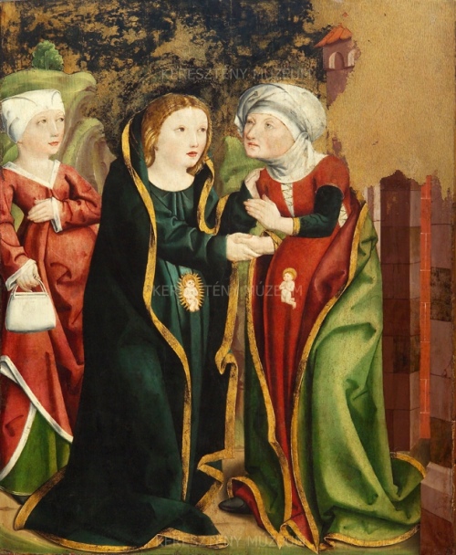 A Mária és Erzsébet találkozását ábrázoló táblakép a Szatmár megyei Csegöld községből került a Múzeumba, de stílusát tekintve inkább felvidéki emlékek mellé társítható. Keletkezésének ideje a 15. század utolsó éveiben lehetett. A várandós Mária kísérőnő társaságában meglátogatja rokonát, Erzsébetet, aki szintén áldott állapotban van. Az angyali üdvözlet híradása után, Mária életének következő, gyakorta ábrázolt állomása ez. Ritka viszont, hogy a még meg nem született magzatok is megjelenjenek a képen, édesanyjuk méhén kívül szemléltetve. A gyermek Jézus dicsfényben, áldó mozdulattal fordul a térdelve imádkozó Keresztelő Szent János felé. A festékréteg jobb felső sarokban olyan nagy kiterjedésű területen hiányos, hogy a restaurátor azt már nem tudta esztétikailag helyreállítani, hiszen nem egyértelmű, hogy pontosan milyen építészeti elem volt a háttérben.
