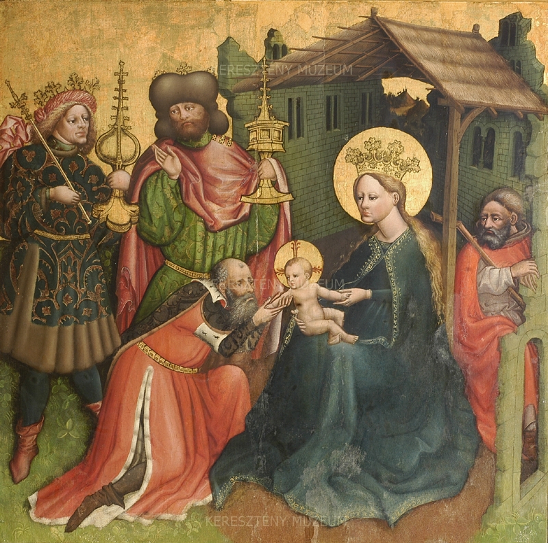 A kép egy szárnyasoltár mozgatható szárnyának belső oldala. Minden bizonnyal egy Mária-oltár lehetett, hiszen Mária különös hangsúlyt kap azzal, hogy királynőként trónol a szegényes istállóban térdén Jézussal. A három díszes öltözetű király (a hagyomány szerint Gáspár, Menyhért és Boldizsár) a művelt és gazdag világ hódolatát jeleníti meg a Megváltó előtt. Ajándékaik drága és műves kivitelű ötvöstárgyak. A legidősebb alázatosan térdre ereszkedik és gyengéden megfogja a gyermek karját, tekintetük összekapcsolódik. A másik két vendég az emberi életkor érett és ifjúkori szakaszát testesíti meg. A kisebb léptékben ábrázolt Szent József a háttérben marad. A gótikában még csak egyszerű kísérője, szemlélője az eseményeknek, szerepe másodlagos. A betlehemi istálló Dávid király egykori palotájának romjai közt található, mely Jézus születésével új életre kel.