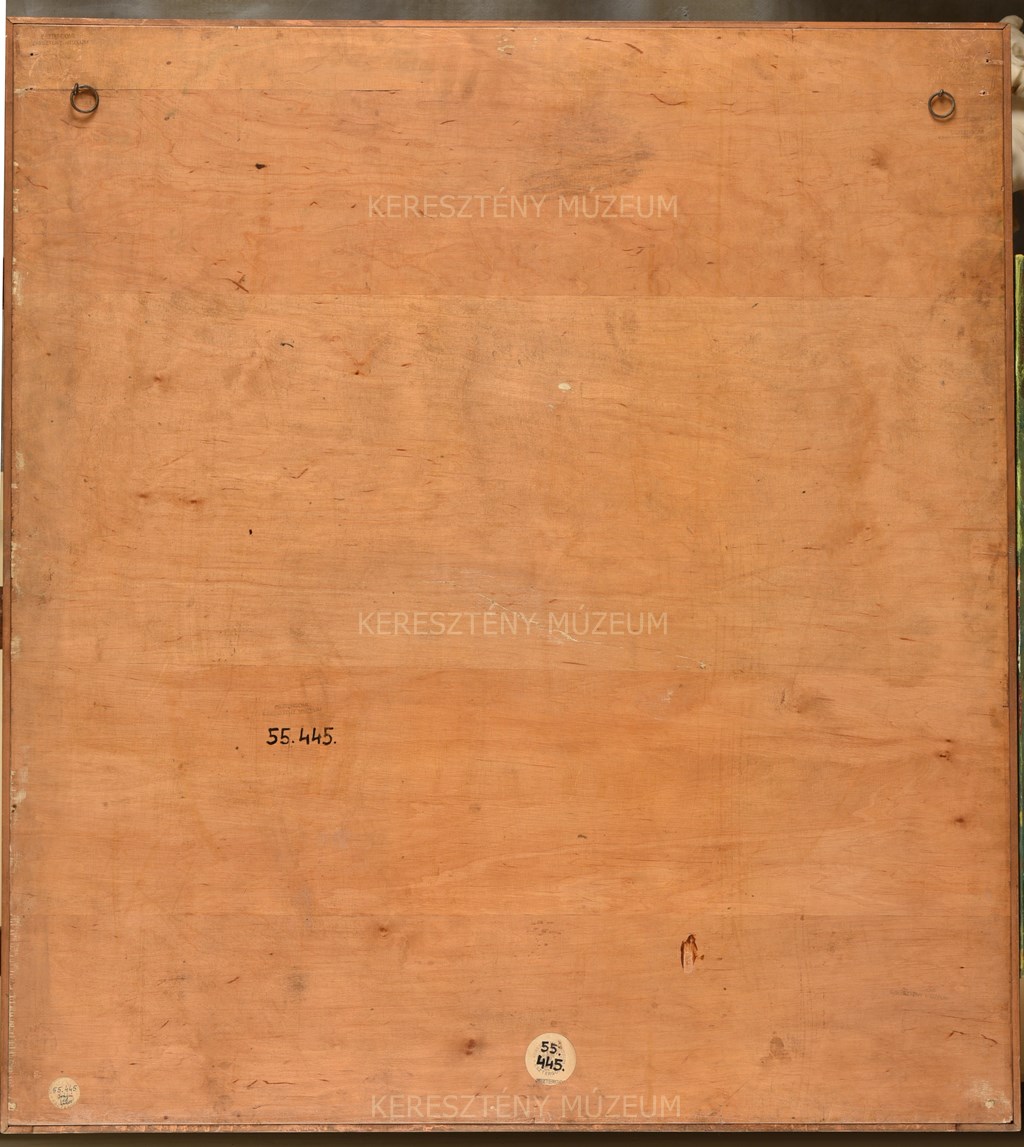 Közel négyzet alakú táblakép, amely a két ferences szent hangsúlyos szerepeltetését tekintve feltételezhetően ferences kötődésű donátor számára készült. Kerete új, mérete azonban eredeti, hiszen a képszél a festmény minden oldalán jól követhető.