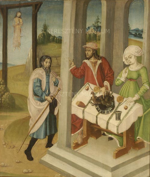 A középkori Európa egyik legismertebb és leglátogatottabb zarándokhelye id. Szent Jakab apostol sírja fölött emelkedik a spanyolországi Santiago de Compostela-i bazilikában. Jakab tisztelete a keresztény világban mindenütt elterjedt, a távoli kis Zólyom vármegyei település, Szentjakabfalva (ma Szlovákia, Jakub) a nevét is tőle kapta. Templomának főoltára – a híres lőcsei oltárhoz hasonlóan – feltehetőleg középen álló szoborként jelenítette meg Szent Jakabot, míg az oltár mozgatható szárnyai nyolc jelenetben mesélnek el két legendát az életéből. A galíciai Lupa királynő először nem szándékozott befogadni a mártír holtestét országába, de a csoda láttán, hogy a fékezhetetlen ökrök, kormányzás nélkül is visszahúzták a testet palotájába, az asszony megtért és méltón eltemette az apostol földi maradványait. A második történet már a zarándoklatok idejéből származik, amikor egy három tagú család – apa, anya és fiuk – igyekeztek Santiago de Compostelába és útközben egy fogadóban szálltak meg. A fogadós leánya beleszeretett az ifjúba, aki nem viszonozta a közeledését, így a leány bosszúból lopással vádolta meg. A fiút a helyi bíró felakasztatta. A szülők elmentek Szent Jakab sírjához imádkozni, majd visszafelé a kötélen élve találták fiukat. A bíró elé járulva bizonygatták, hogy a fiú él. Az nem hitte és gúnyosan azt mondotta: „Akkor él a fiuk, ha a tányéromon ez a sült kakas él.” Erre a kakas valóban felreppent az asztalról. A fiú csodálatos menekülésének híre tovább erősítette a zarándokok bizalmát a szent apostol közbenjárásának erejében.