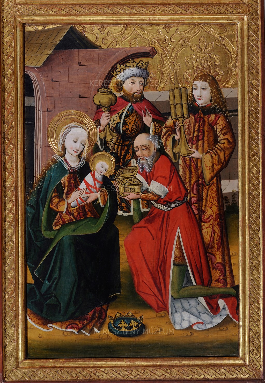 Az oltár jobboldali mozgatható szárnya. Belső oldalán a Születés és a Királyok imádása, külső oldalán fölül a Vir Dolorum álló alakja, amelyet, körvonalait pontosan követő, azonos témájú barokk ábrázolással fedtek el; az alsó táblán eredetileg püspökszent álló alakja, amelyet barokk Keresztrefeszítés-ábrázolássá alakítottak. A legutóbbi tisztításkor részben feltárták az eredeti festésréteget.