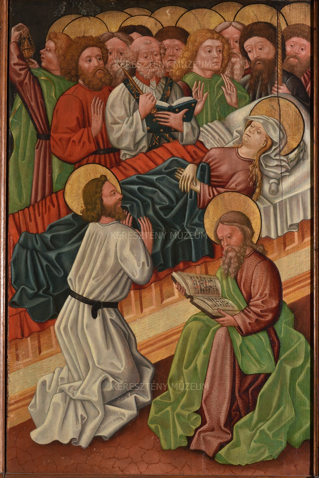 Az aranyosmaróti plébániáról a Keresztény Múzeumba került, mindkét oldalán festett táblakép, valamint az eredetileg vele egyazon oltárhoz tartozó, 55.20 leltári számú, Keresztelő Szent János lefejezését ábrázoló szárnytábla eredeti használati helye ismeretlen. A korábban az Aranyosmaróti I. mesternek tulajdonított festményeket, stílusuk alapján a korábbi szakirodalom részben a Borbála-oltár mestere követőjének (Labuda 1983), részben alsó ausztriai műhelynek tulajdonította (Cséfalvay 1993 - Török Gy.). Aranyosmarót templomának középkori berendezéséhez való tartozását egyelőre semmi sem igazolja. Elképzelhető, hogy a Migazzi-kastélyból került a plébániára, és Migazzi Kristóf több más műtárggyal együtt, Bécs környékén vásárolta.