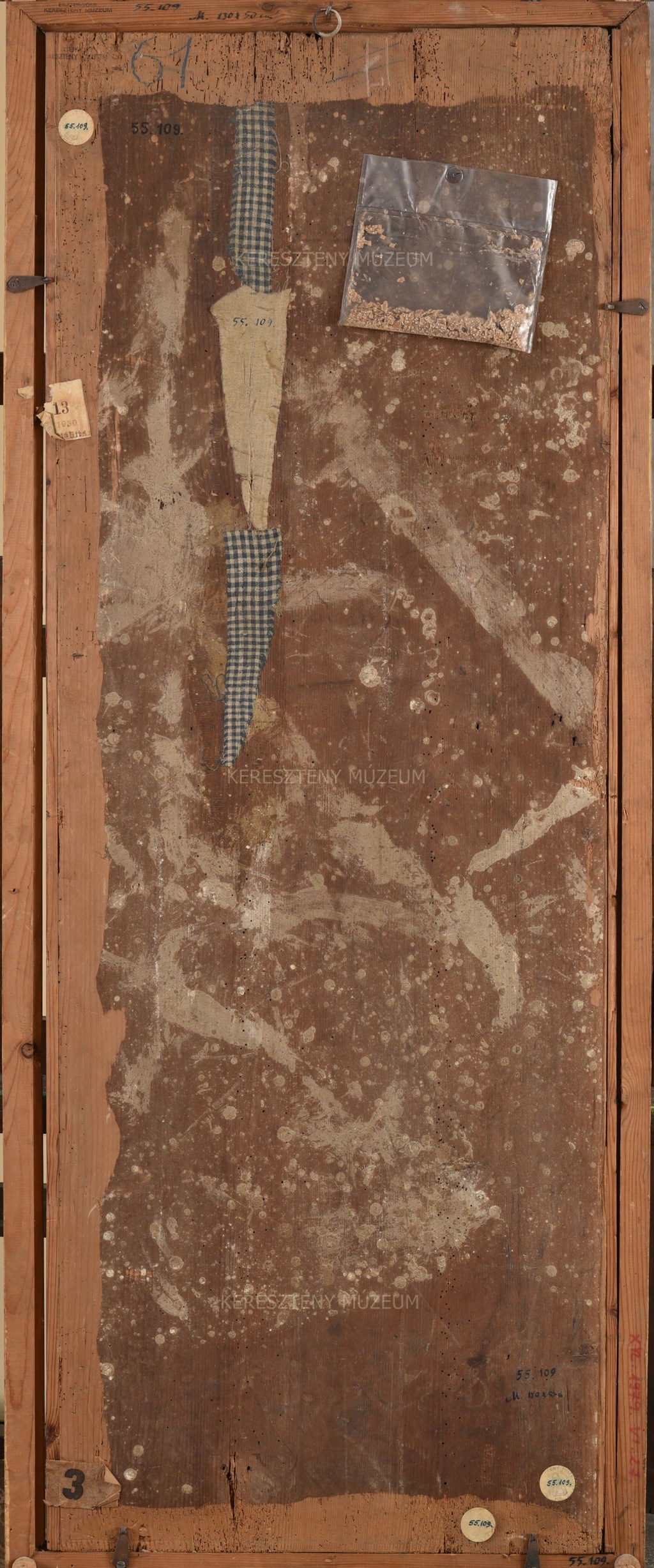 középkép kerettel: 129 x 91 cm, oltárszárny kerettel: 127 x 45,5 cm