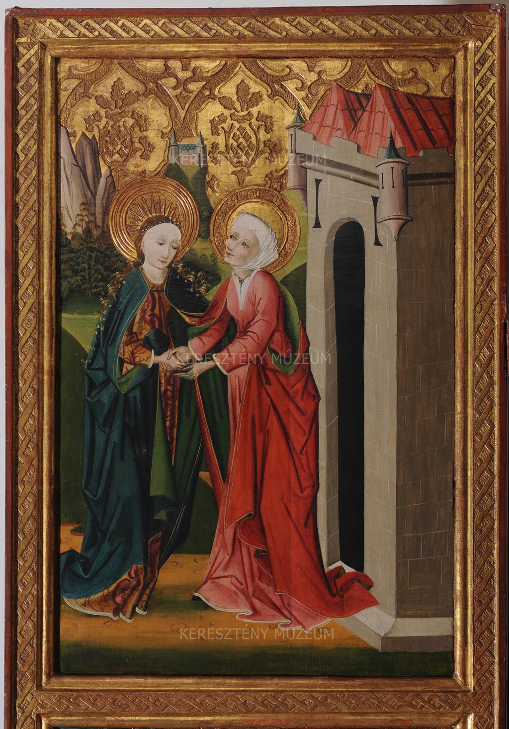 Az oltár baloldali mozgatható szárnya. Belső oldalán a Vizitáció és az Angyali Üdvözlet. Külső oldalának fölső tábláján eredetileg női szent, valószínűleg Mária álló alakja, amelyet barokk Olajfák Hegye ábrázolással fedtek el; az alsó táblán eredetileg püspökszent álló alakja, amelyet barokk Keresztvitel festettek fölül. A legutóbbi tisztításkor részben feltárták a középkori festésréteget.