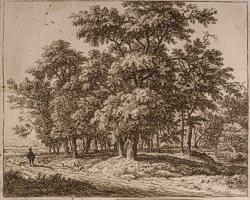 Antoni Waterloo: Erdő mellett sétáló férfi kutyával. Rézkarc, 11,5 x 14,5 cm. Jelezve jobbra lent A. W. F.
